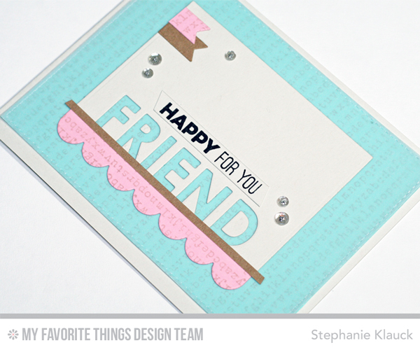 I love all of the great pieces that come in the Blueprints 8 die-namics. There are so many great card designs you could create with this set alone! For my card, I used the small rectangle piece as well as the scallop border, the friend border and the small banner flag.
